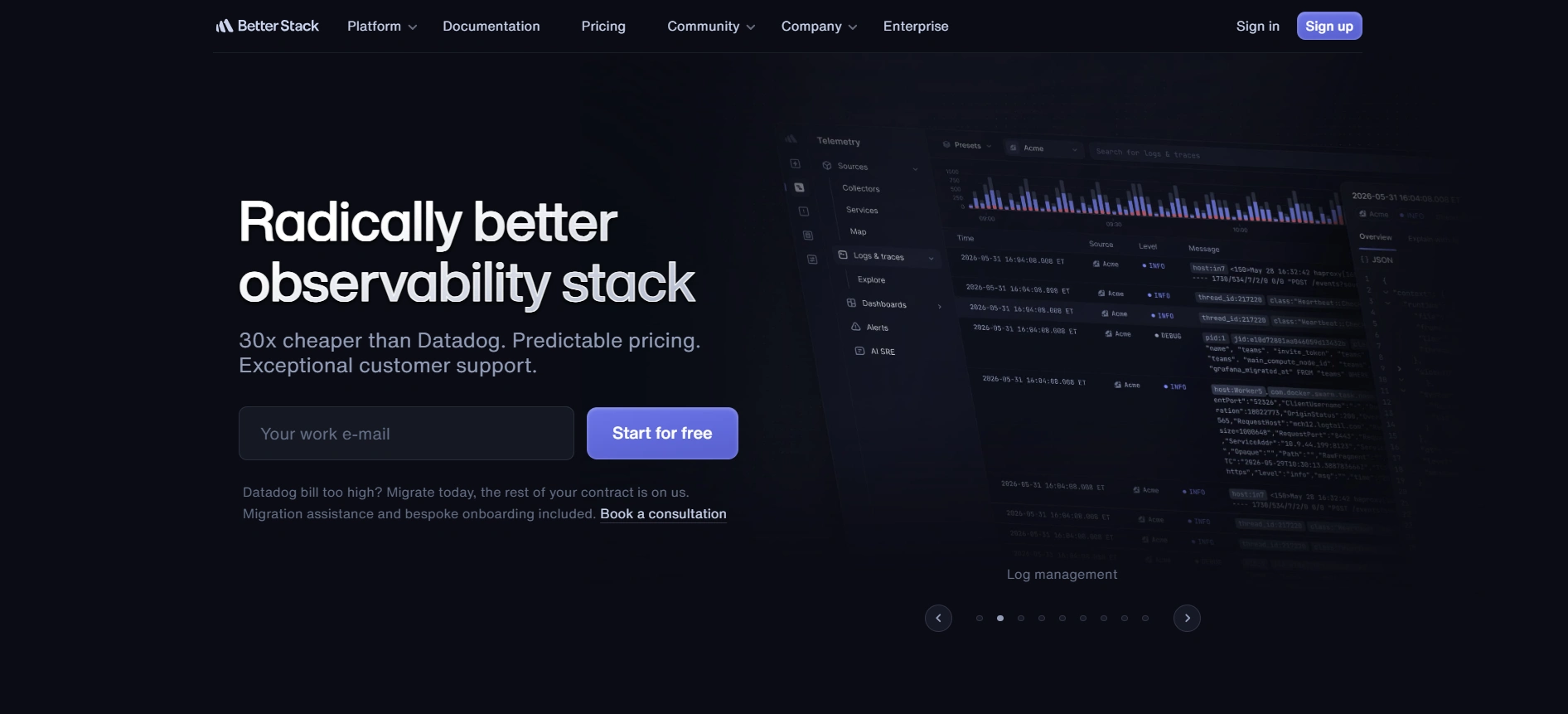 The platform includes log management alongside traditional monitoring. For teams that want monitoring and incident response tightly integrated, Betterstack offers that combination.